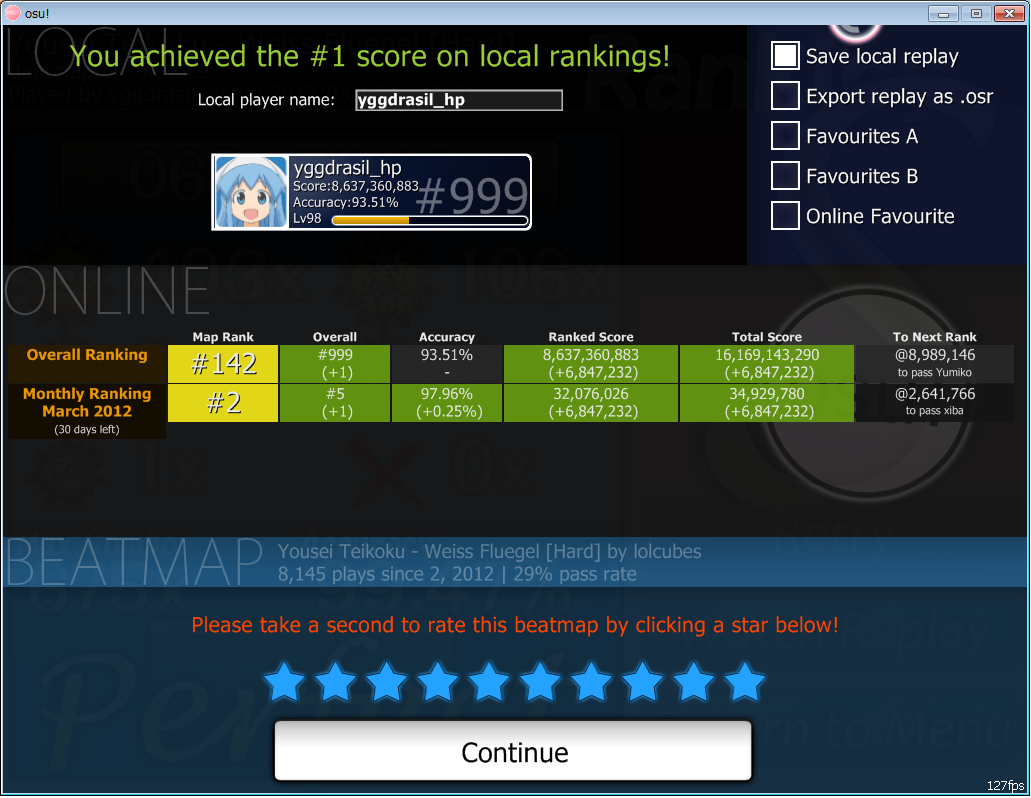 500万点未満クラスでもおいしいと感じるランク帯の人は、まずは簡単でもいいので長めの曲でフルコンを取る練習から始めるといいかもしれません。
